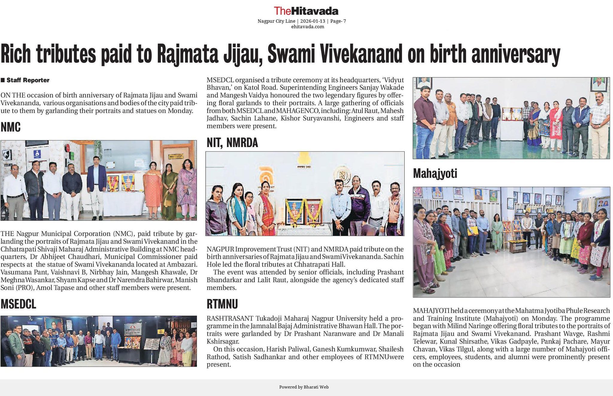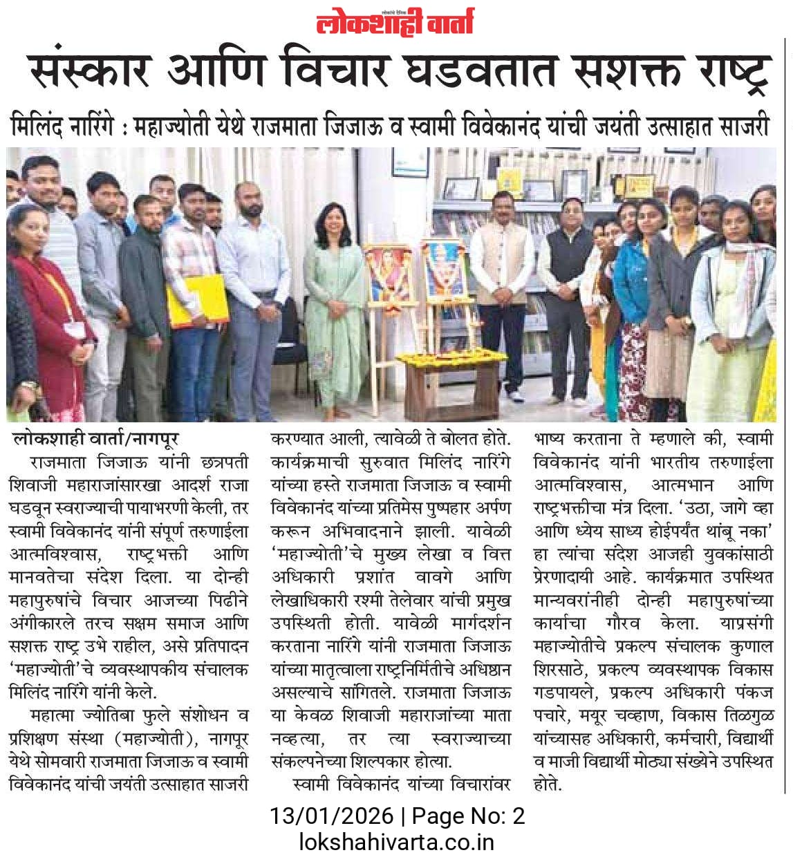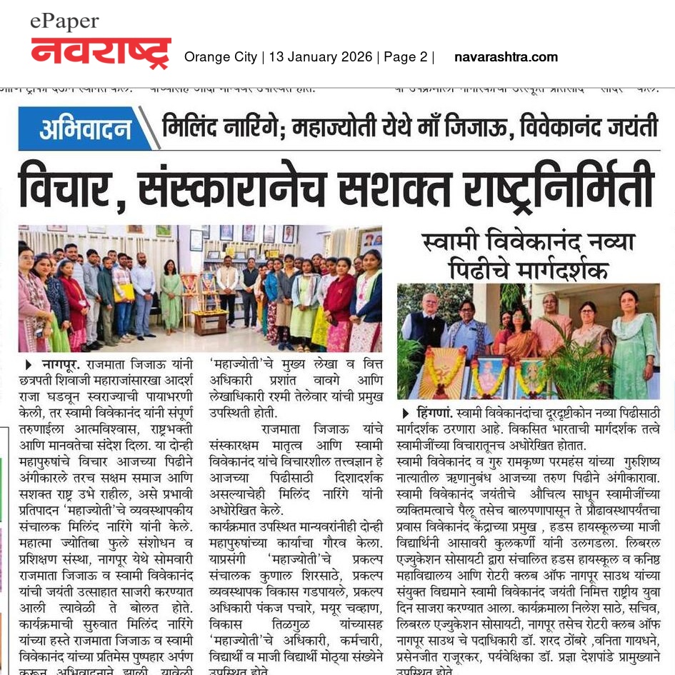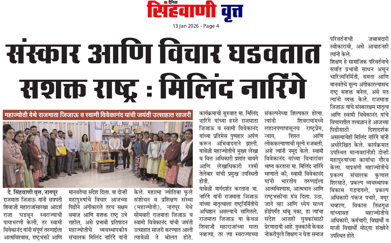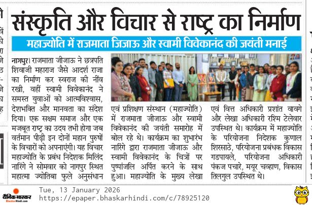 महाज्योती येथे राजमाता जिजाऊ व स्वामी विवेकानंद यांची जयंती उत्साहात साजरी (13-01-2026)
